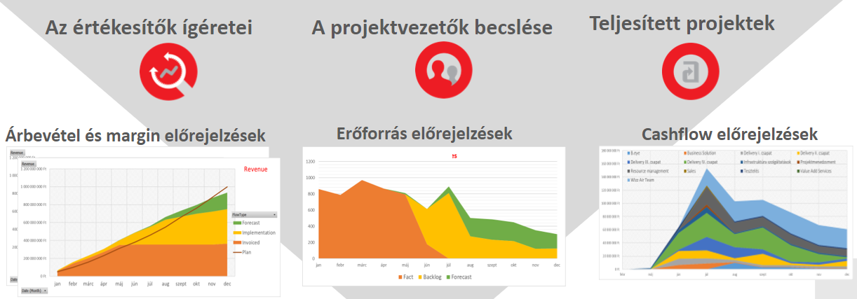 Az egyes folyamati szereplők által rögzített adatok eredője, a változások hatása a cég várható eredményességére azonnal leolvasható a riportokból, így a beavatkozási pontok időben azonosíthatók, a szükséges üzleti döntések meghozhatók.